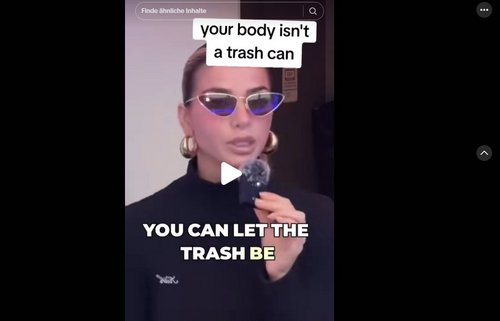 Auch „Hungergruppen“ aus dem Skinnytok-Umfeld sind bereits aus der „Pro-Ana“-Bewegung bekannt. In diesen Zusammenschlüssen bestärken sich essgestörte Personen gegenseitig zu immer drastischerem Gewichtsverlust. Typisch sind eine streng hierarchische Struktur, hoher psychischer Druck und sogenannte Abnehm-Challenges. Solche Gruppen agieren meist im Verborgenen, etwa über WhatsApp, Discord oder Telegram. Trotz ihrer problematischen Natur sind sie weiterhin aktiv – entsprechende Werbebeiträge kursieren nach wie vor auf Social-Media-Plattformen. Durch gemeinsame Hashtags tauchen sie auch im Kontext von Skinnytok auf.